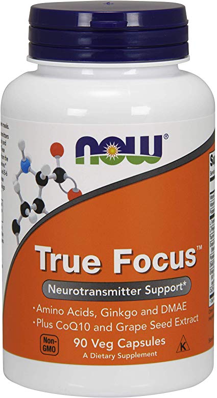 Norepinephrine and Dopamine are key neurotransmitters for the maintenance of alertness and mental acuity while promoting a feeling of general well-being. These two neurotransmitters are produced in the body from amino acid precursors primarily L-Tyrosine and L-Phenylalanine, requiring Vitamins C and B-6 as cofactors. NOW® True Focus™ combines these important nutrients with other ingredients like Ginkgo biloba and DMAE to maximize mental agility without the stimulating side effects of caffeine or ephedra.*